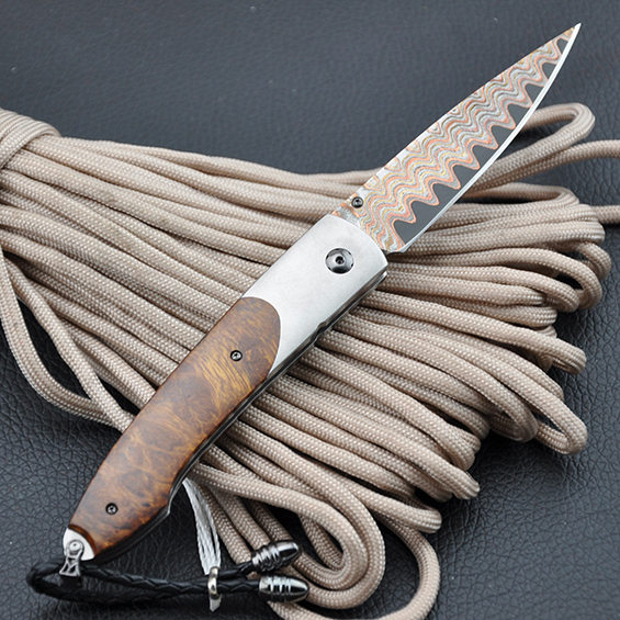 威廉亨利B10 沙漠铁木&钛柄,VG5内核含铜不锈钢大马,镶嵌尖晶石宝石。